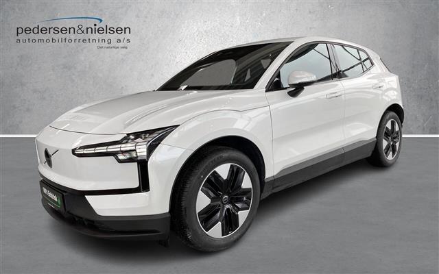 - EX30 Plus: Elektrisk Bagklap, Interiørbelysning, højt niveau, Måling af luftkvalitet og fjernbetjent forrensning af kabineluft, Fleksibelt bagagerumsgulv, Adaptive Cruise Control, Automatisk nedblændede bak- og sidespejle, Driver Alert System, Front Cross Traffic Alert, BLIS, Intelligent hastighedsassistent (ISA), Lane Change Assist, Vognbaneassistent, LED forlygter Mid Level med Active High Beam, Parkeringssensorer, for og bag, Bak kamera, Pilot Assist, Cross Traffic Alert med automatisk bremse, Regnsensor, Steering Avoidance Fodgængere og cyklister, 2 zone klimaanlæg, Harman Kardon Premium Sound system, Applecarplay, Google Assistant, Google Maps og Google Play Store, Trådløs telefonopladning, Digital Key, ISOFIX, El-opvarmede forsæder